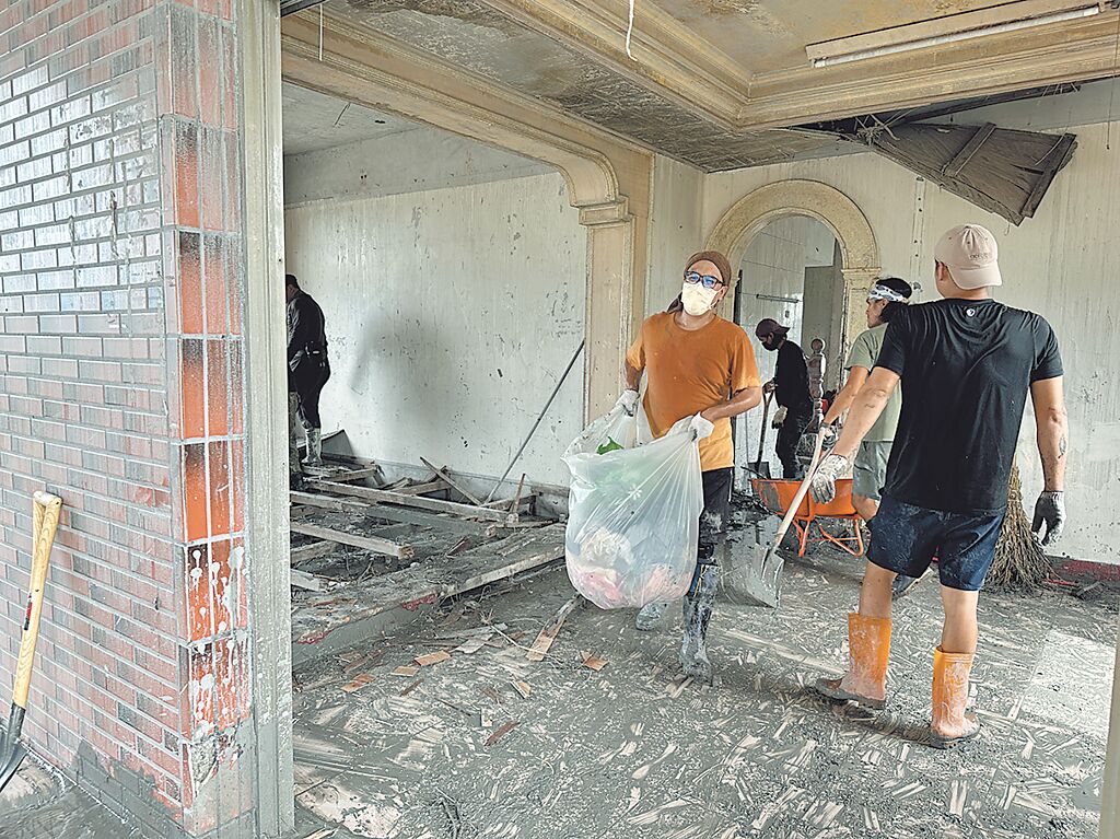 表示,冰箱、摩托車、積蓄全被沖走,連神明桌也不見,生活幾乎歸零;幸好有志工幫忙