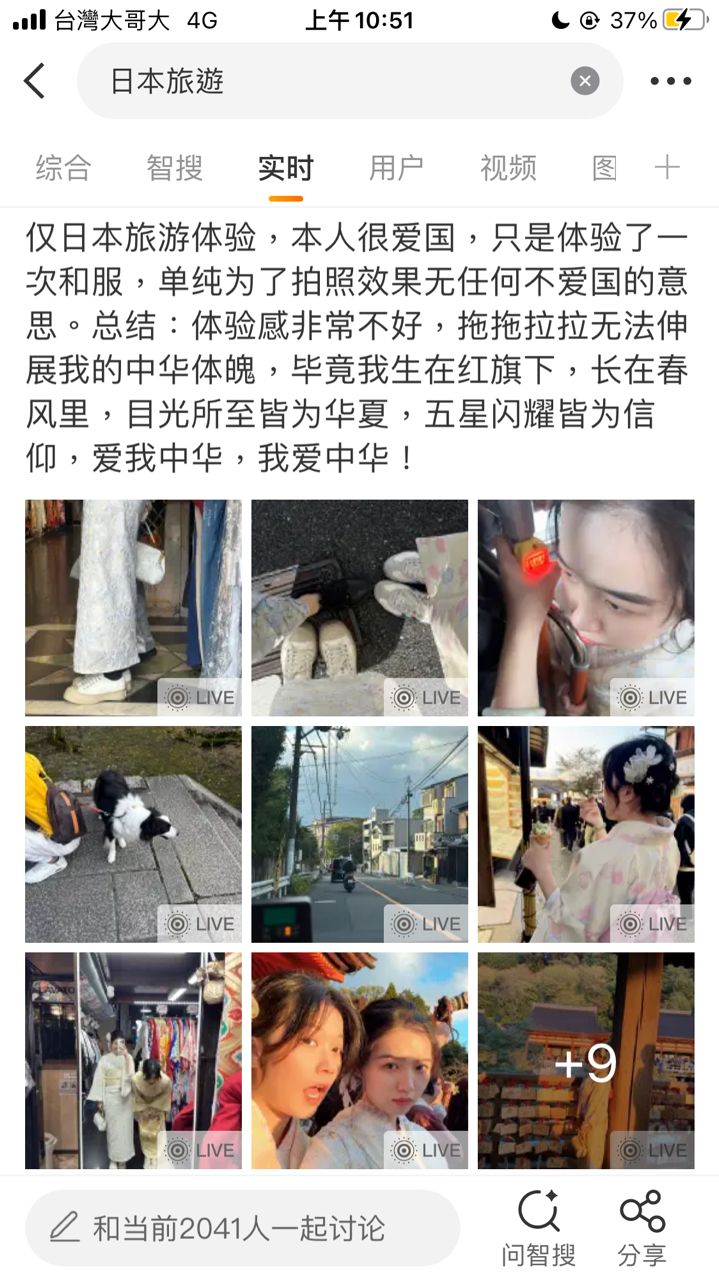 → njnjy: 中國穿漢服都會被當日本人打 27.51.1.172 11/15 11:04