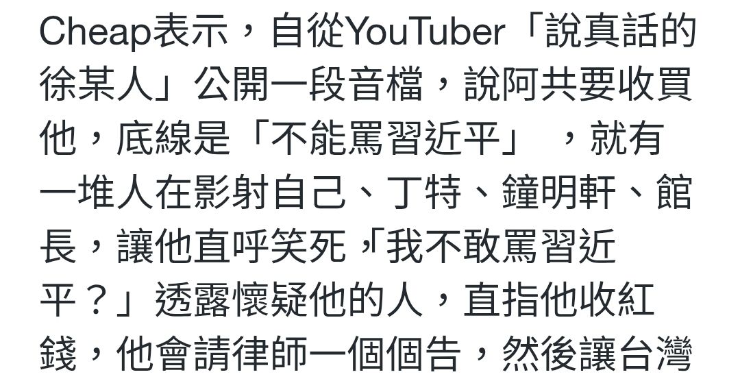 → benothing: 找不到他罵習近平,不然應該可以很快 111.71.79.188 12/24 09:41