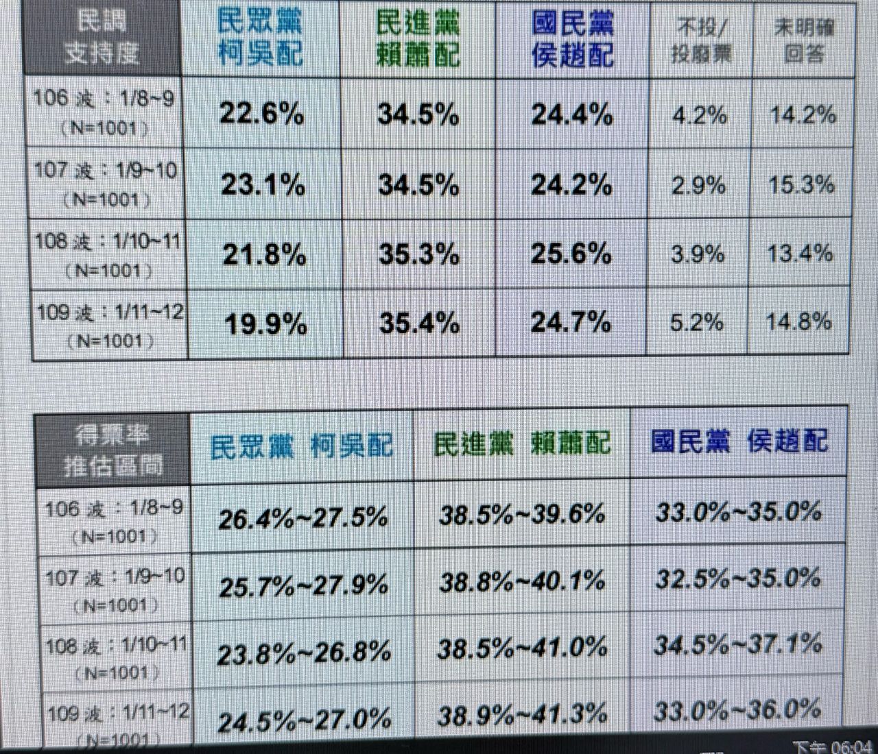 政黨支持度與選舉結果綠高度吻合 藍白都被低估3~8%不等