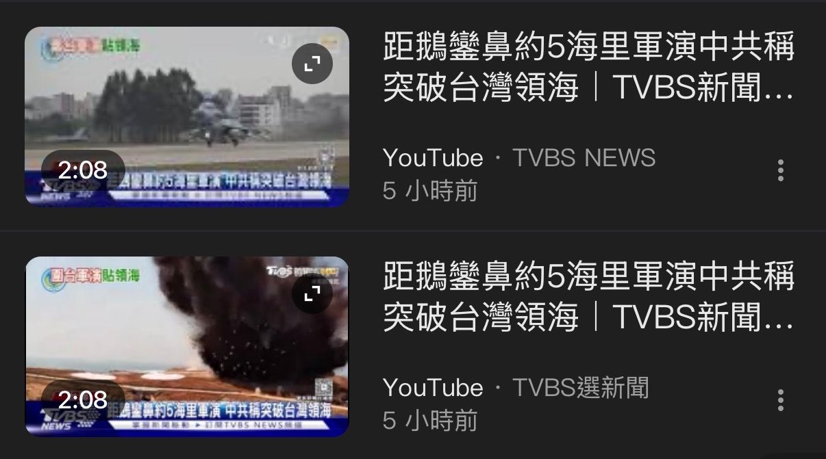 新聞影片裡是說中共官媒把歷次軍演範圍層層套疊,這次範圍畫到離鵝鑾鼻五海浬處 沒