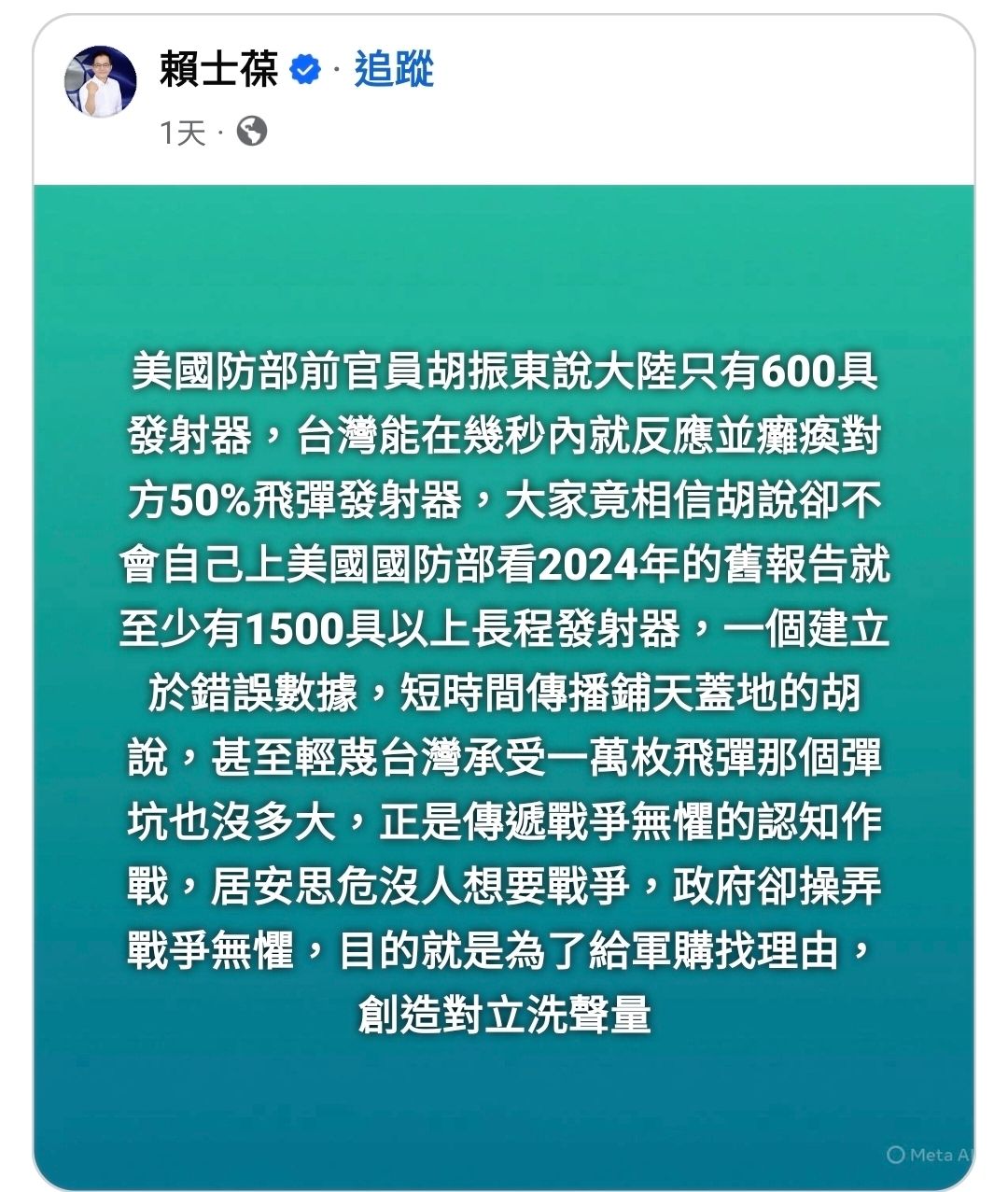 推 IMBonjwa: KMT講1500是錯的,那個包含長程飛彈不 118.233.3.163 01/03 15:30
