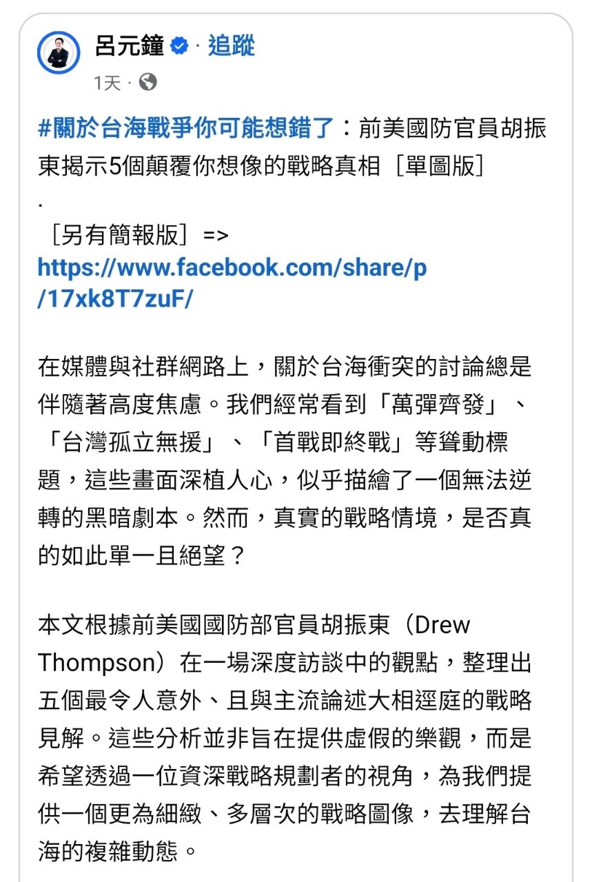 → nsk: 他以為米國前官員的言論可能會讓台灣人鬆懈 42.74.110.221 01/03 17:45