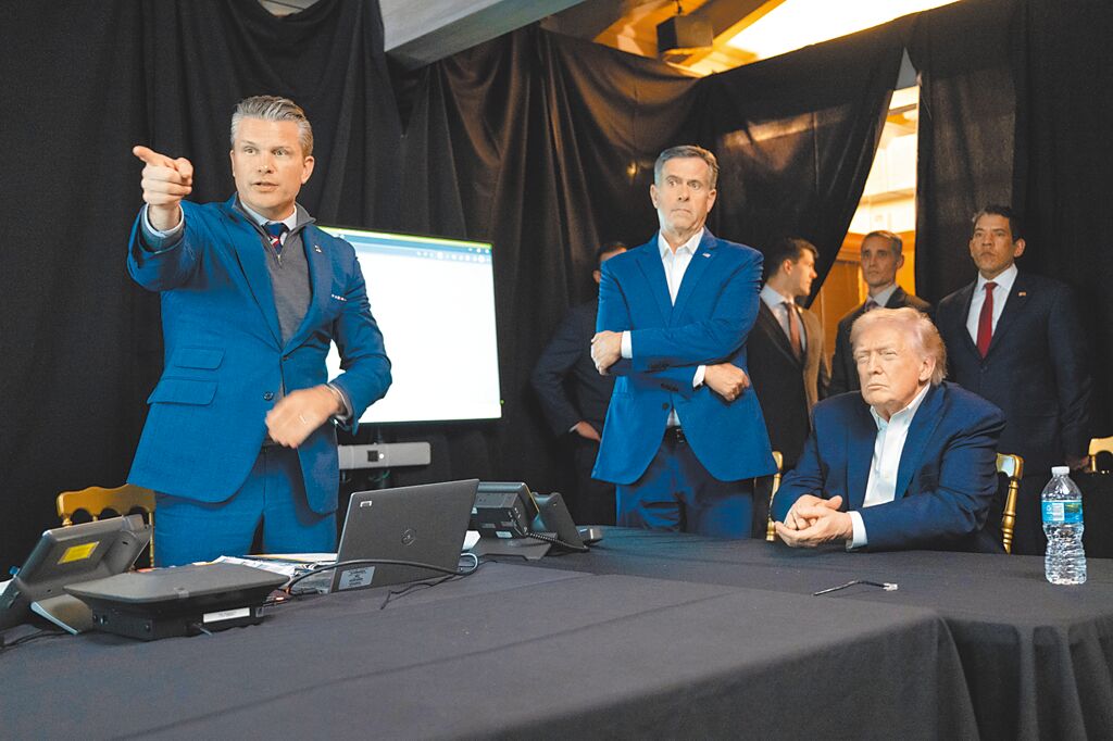 美國總統川普(右)與戰爭部長赫格塞斯(左)及中情局長雷克里夫(中),1月3日在佛