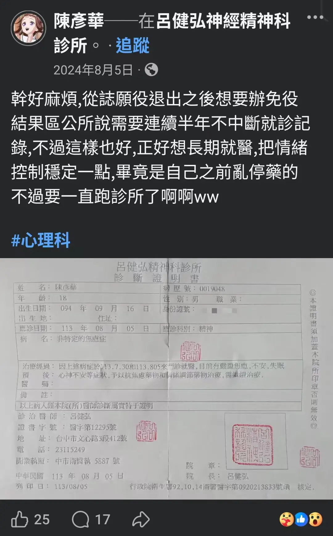 個人是覺得去嘲笑這種去試過當志願役還是無法適應的焦慮症患者