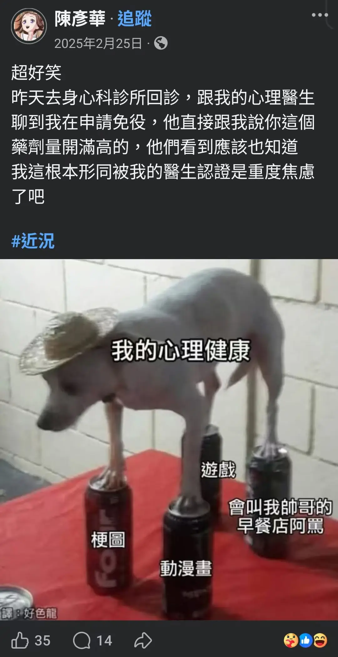 目前當事人好像在自嘲這件事