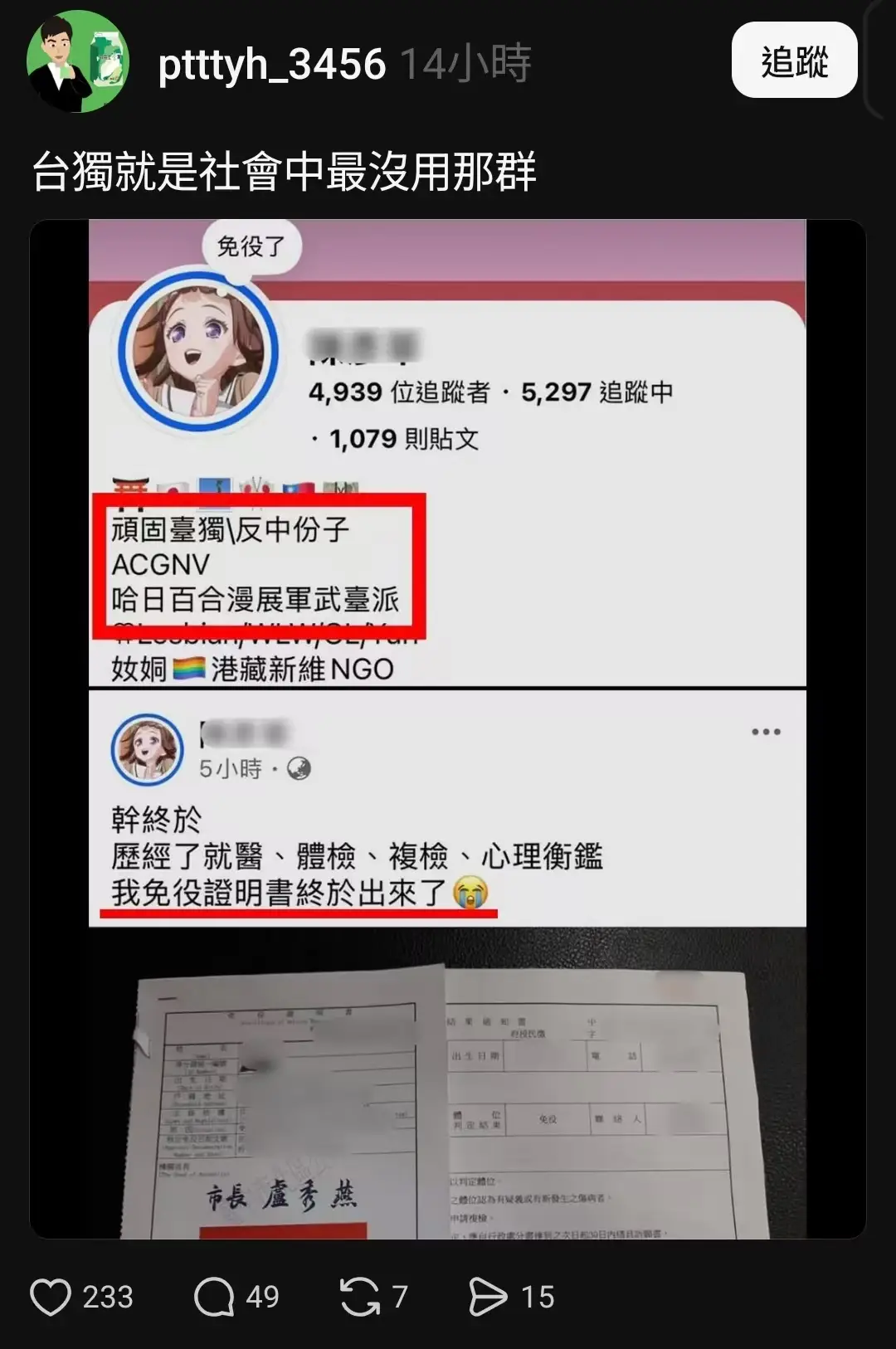 標題Re: [討論] 脆熱議:青鳥軍武宅拚免役成功