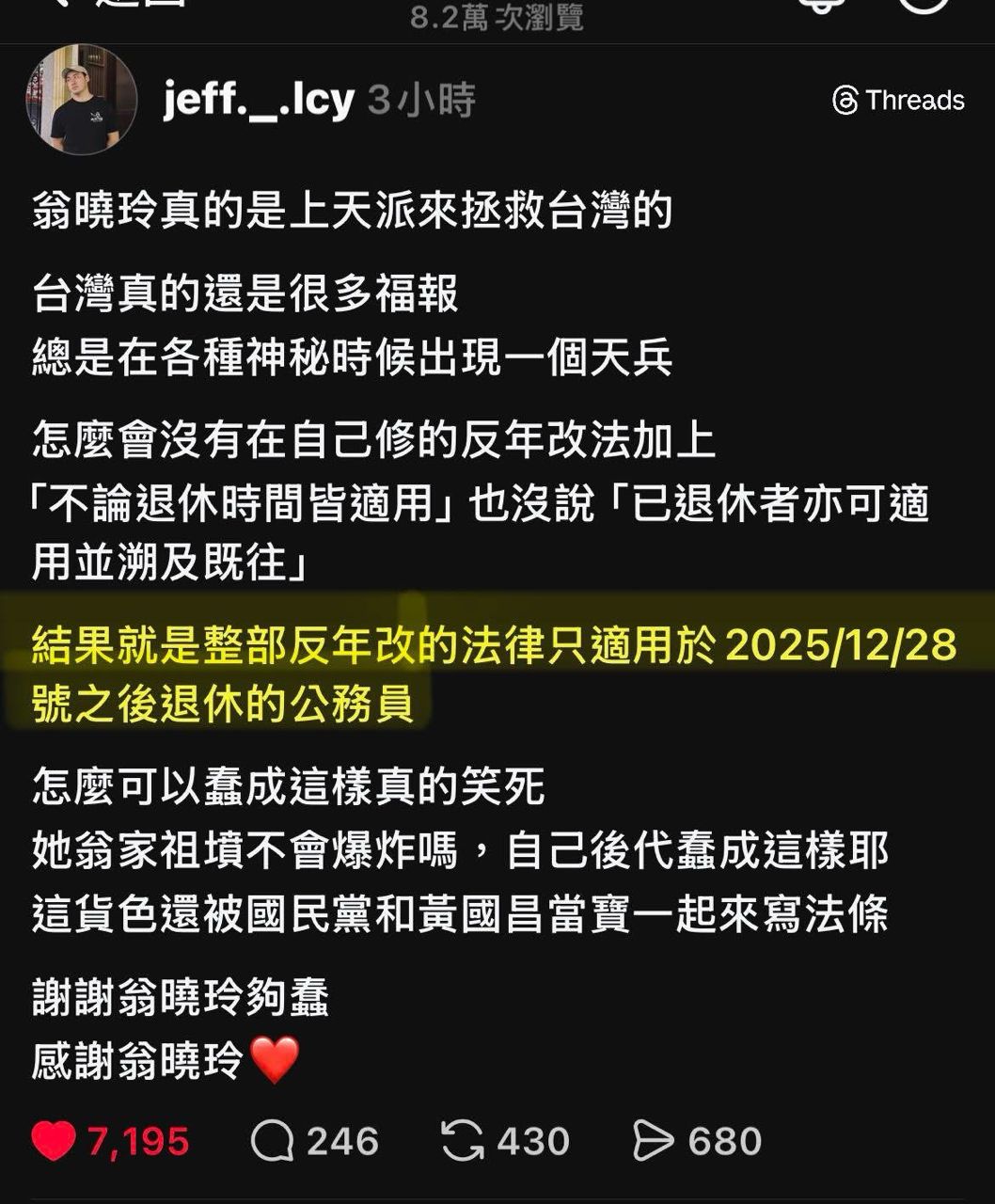 標題[討論] 反年改結果只適用於2025/12/28後退休的