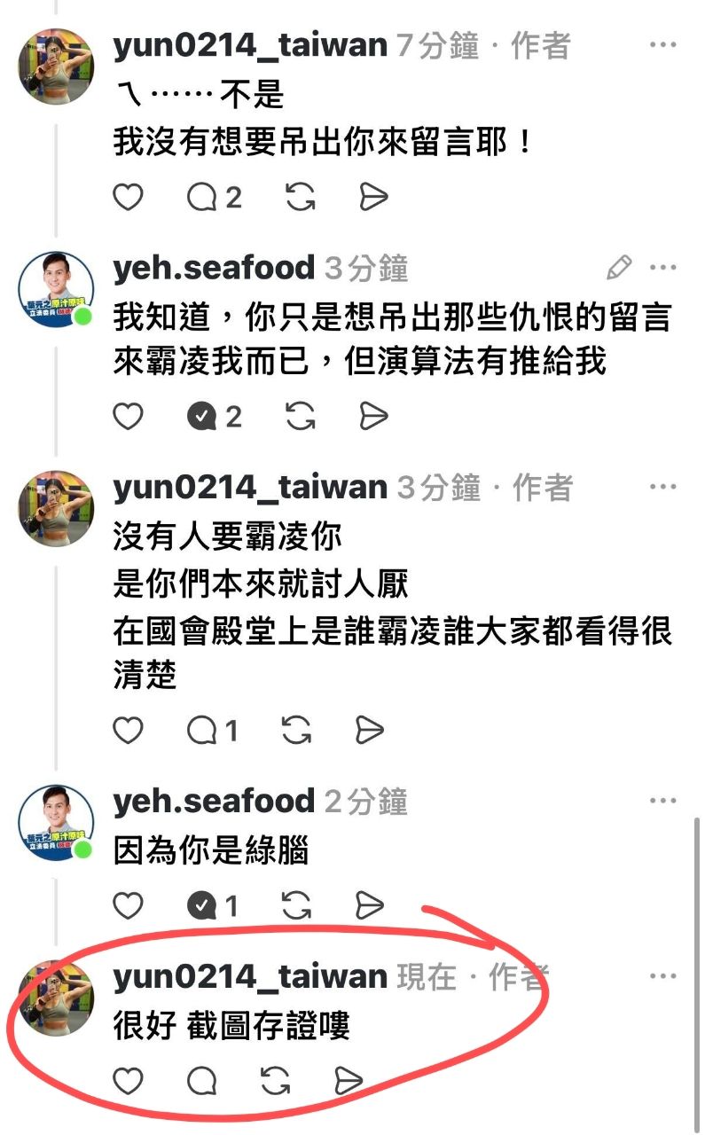 發表「白癡沒藥醫」、「腦子不要當大腸使用啦」、「笑死綠共大腦裝米田共」等留言)