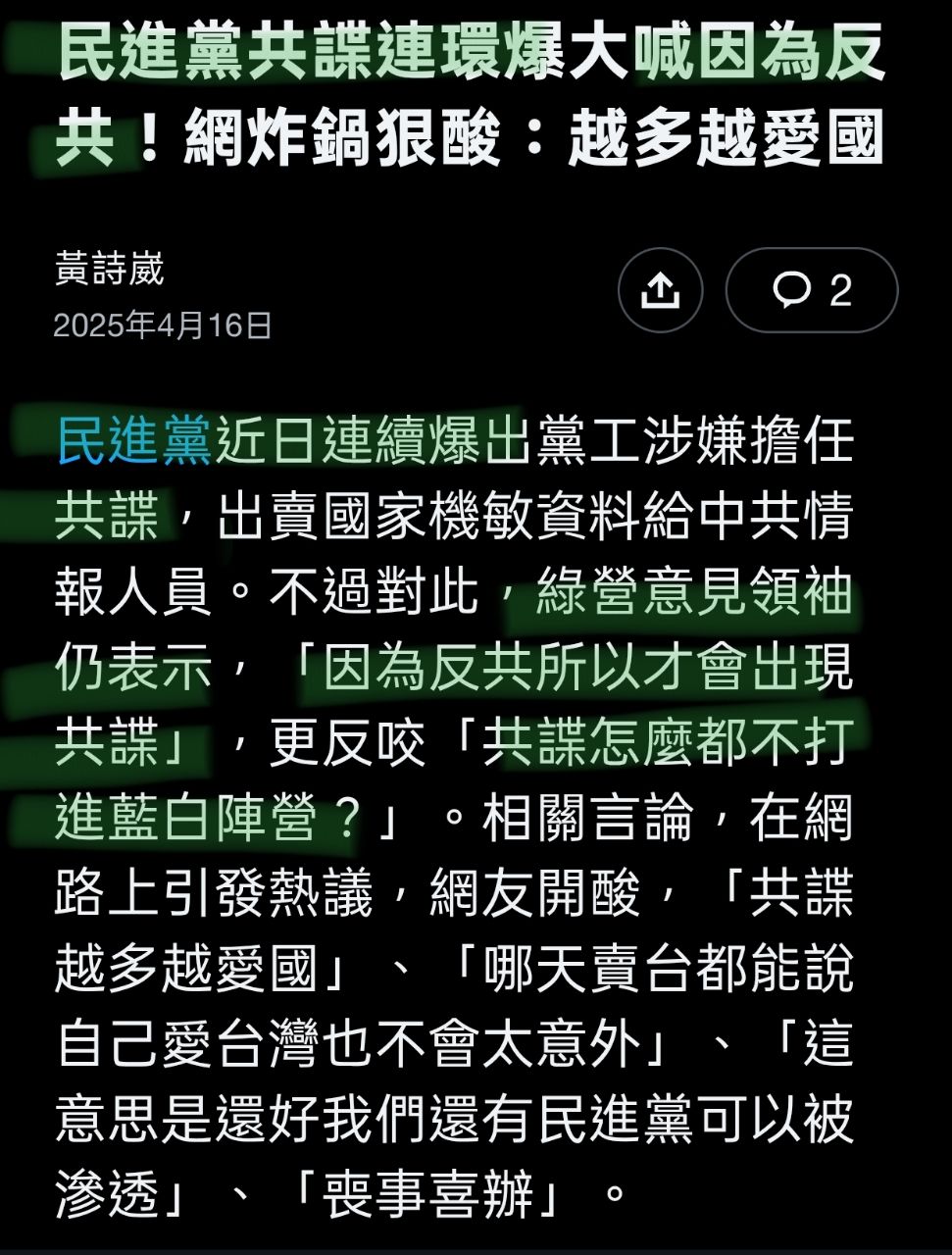 → geordie: 所以抓到共諜都要譴責不是? 114.40.150.201 01/17 21:06