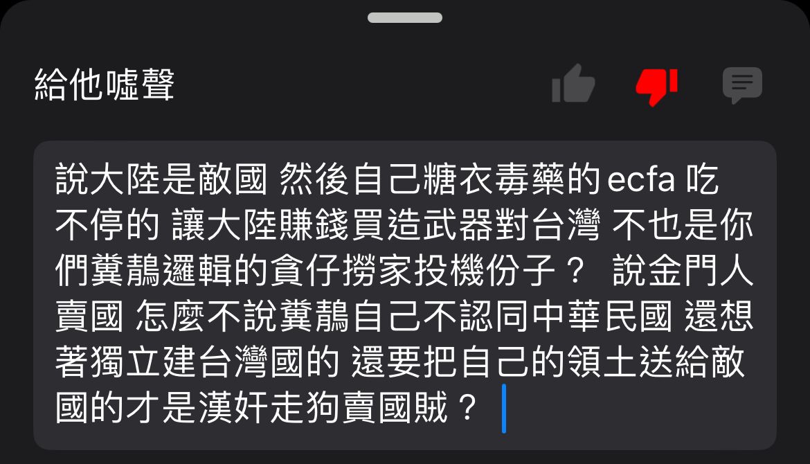→ coolorphen: 天喊台灣是14億人共同決定的一樣就好 223.138.252.17 01/18 16:08