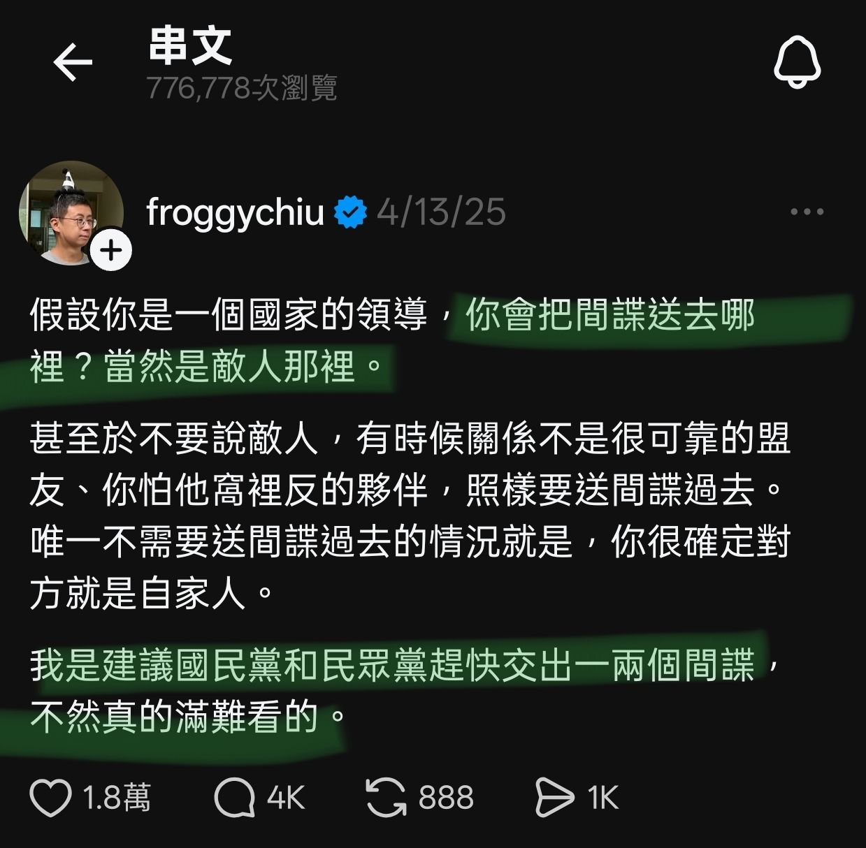 → neofire: 你只要定位成共諜,就能找鄭麗文來鞠躬 49.217.123.93 01/18 22:21