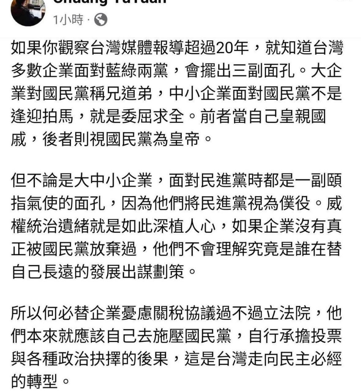 → win8719: 要不給投資記得立法阻擋喔民營企業對美國 118.160.79.9 01/28 22:09