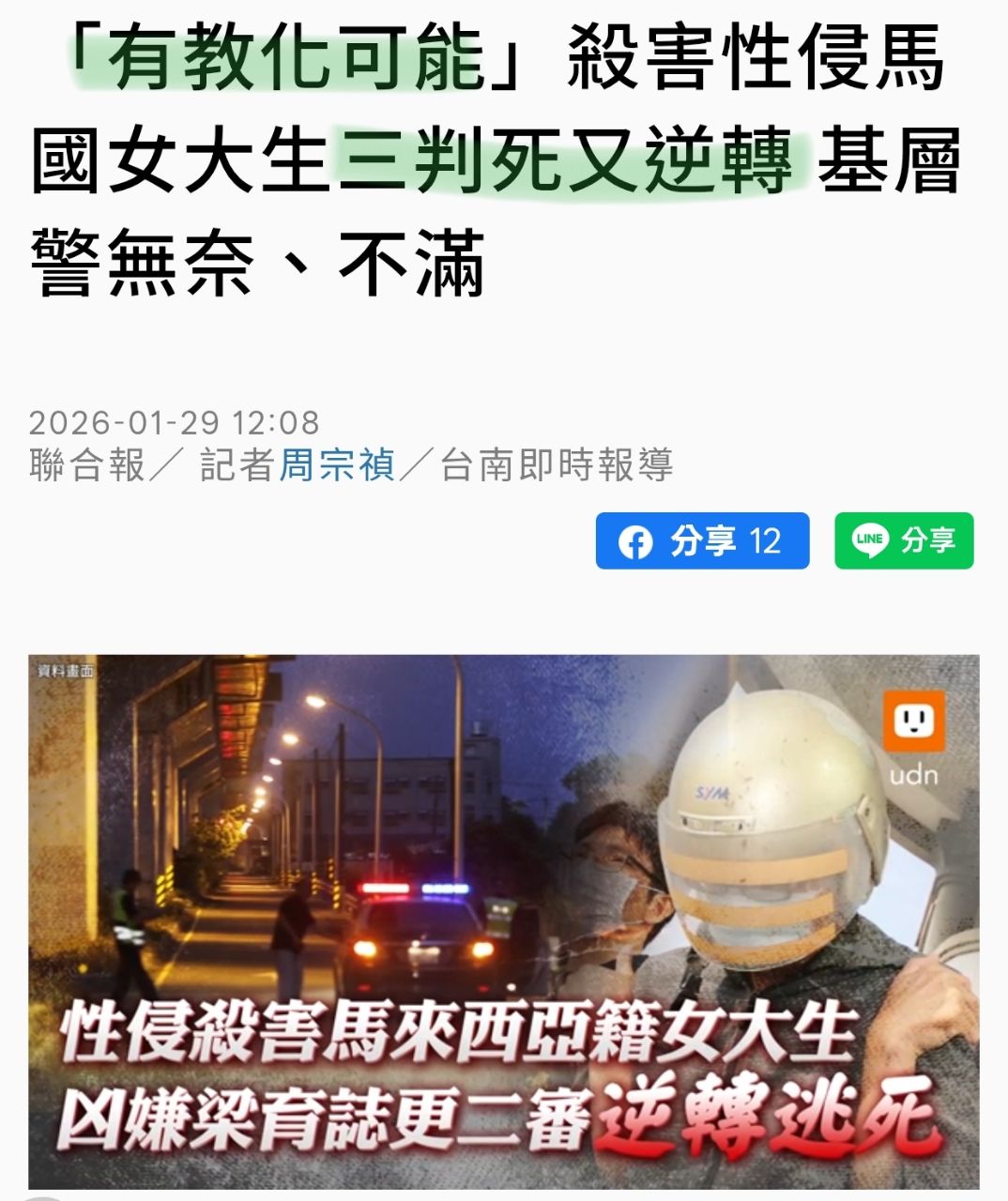 標題[新聞] 「有教化可能」殺害性侵馬國女大生三判