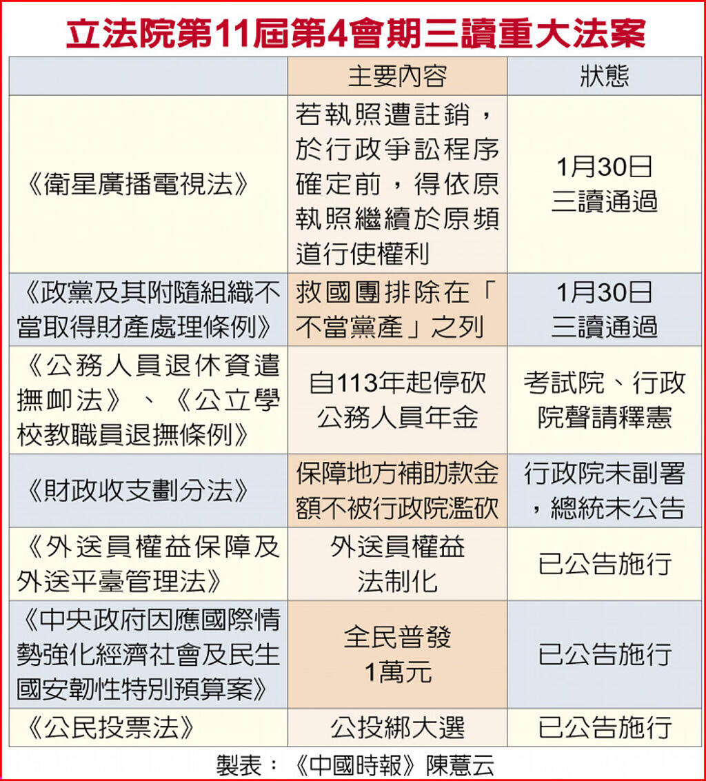 立法院第11屆第4會期三讀重大法案