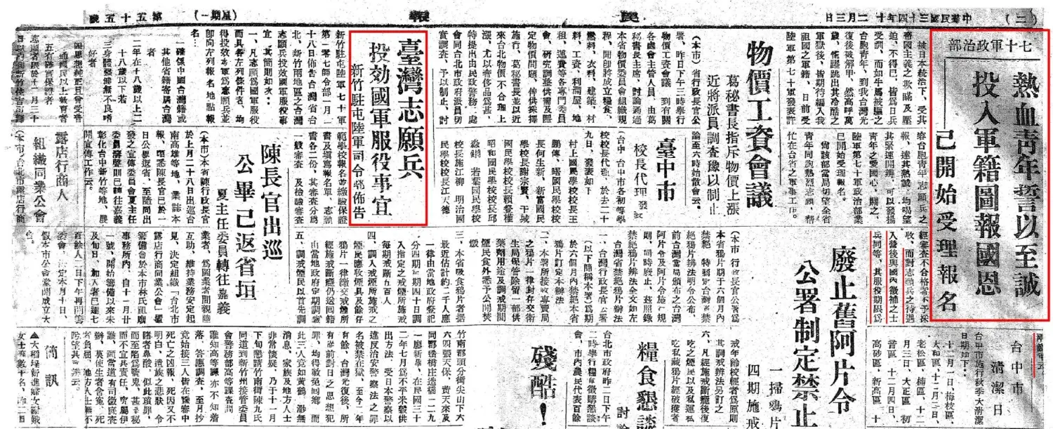 國共內戰,國民黨完全沒有在台灣招募任何台灣人