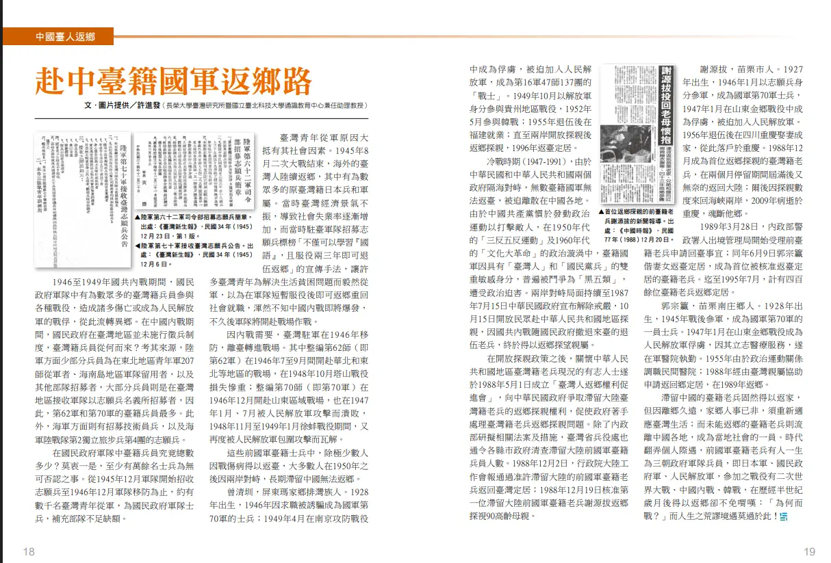 赴中臺籍國軍返鄉路
