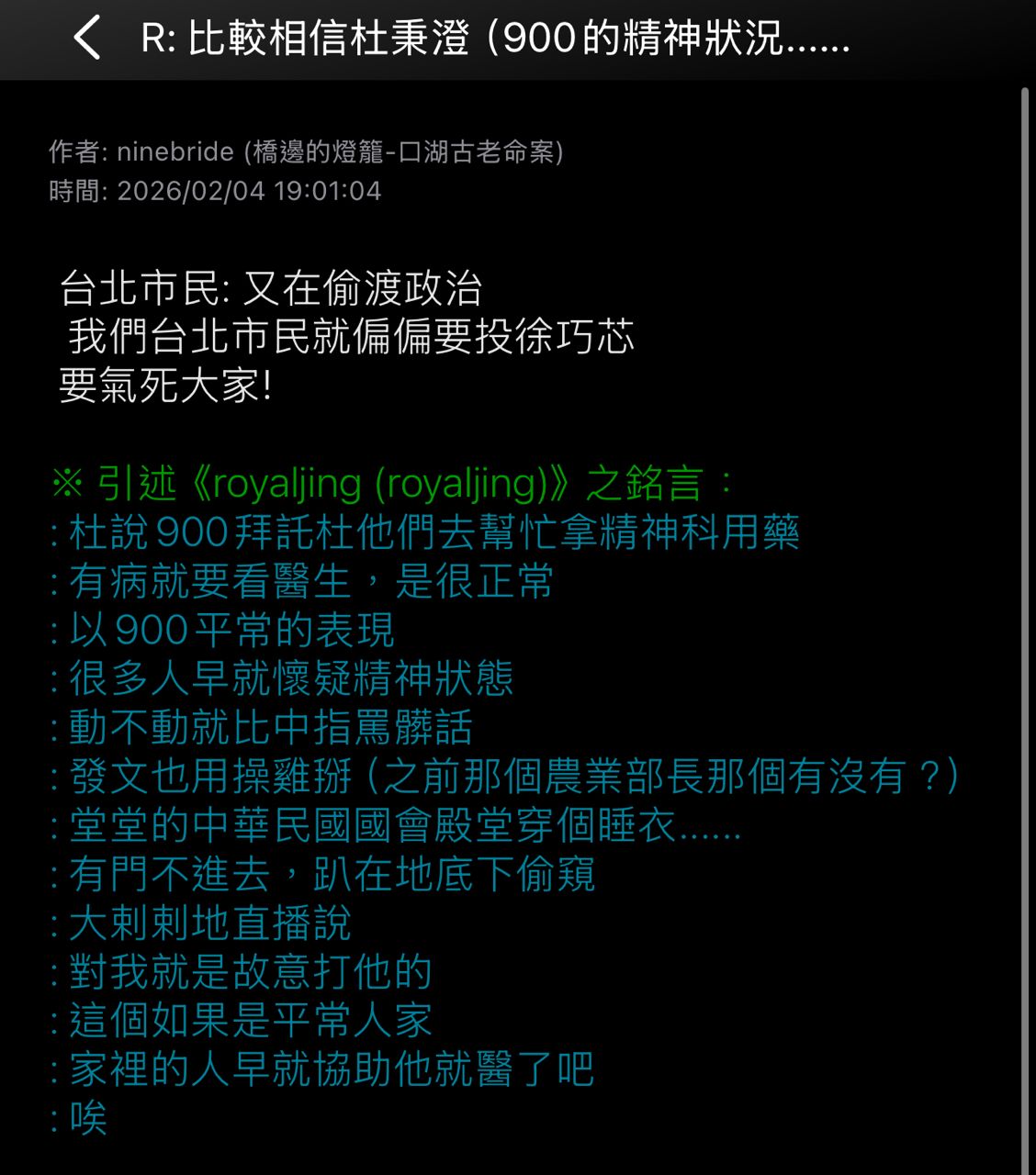 ※ 文章網址: https://www.ptt.cc/bbs/HatePolitics/M.1770250763.A.11E.html