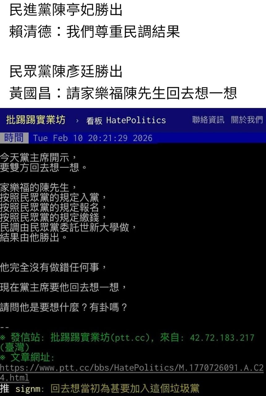 ※ 文章網址: https://www.ptt.cc/bbs/HatePolitics/M.1770807612.A.CAE.html