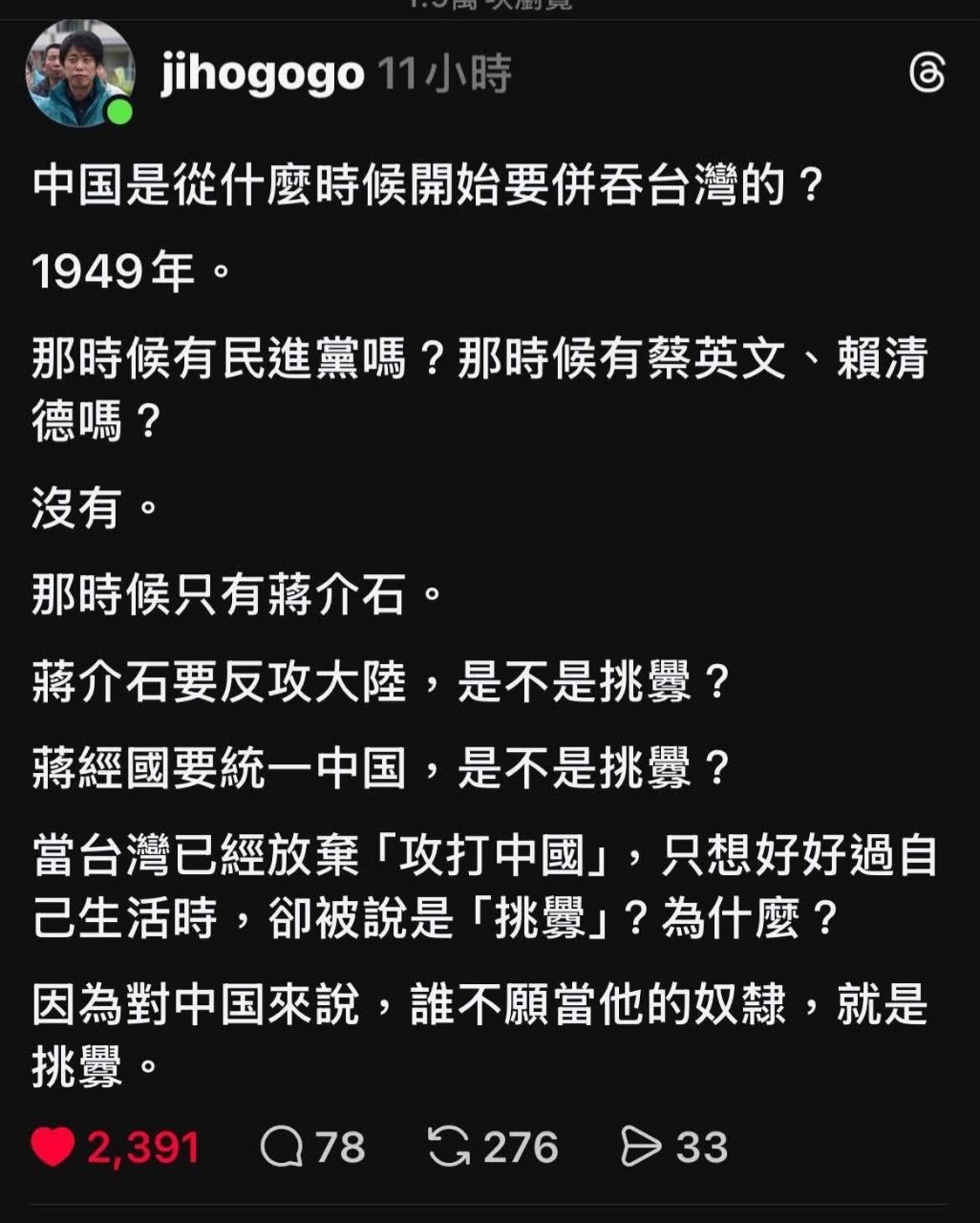 噓 holysong: 有一個便宜的賤貨說從小看黨外雜誌 114.46.190.190 02/15 01:46