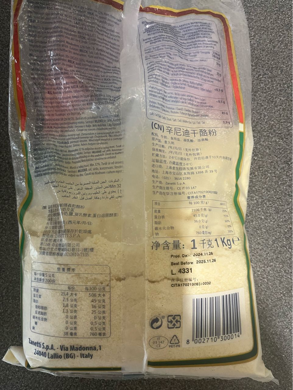 4. Zanetti 帕馬森起士粉800克