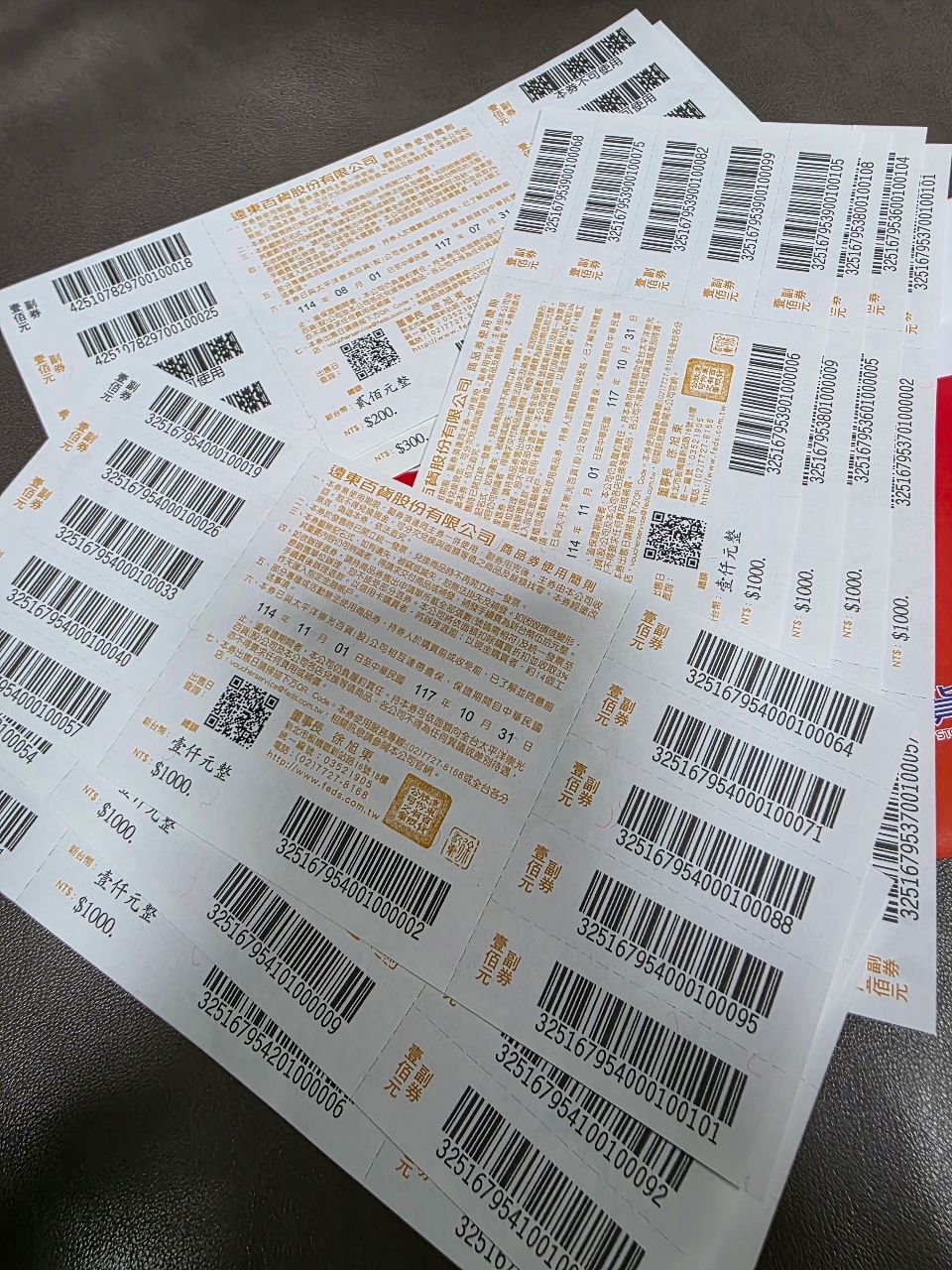 1000元7張.300元一張.200元一張