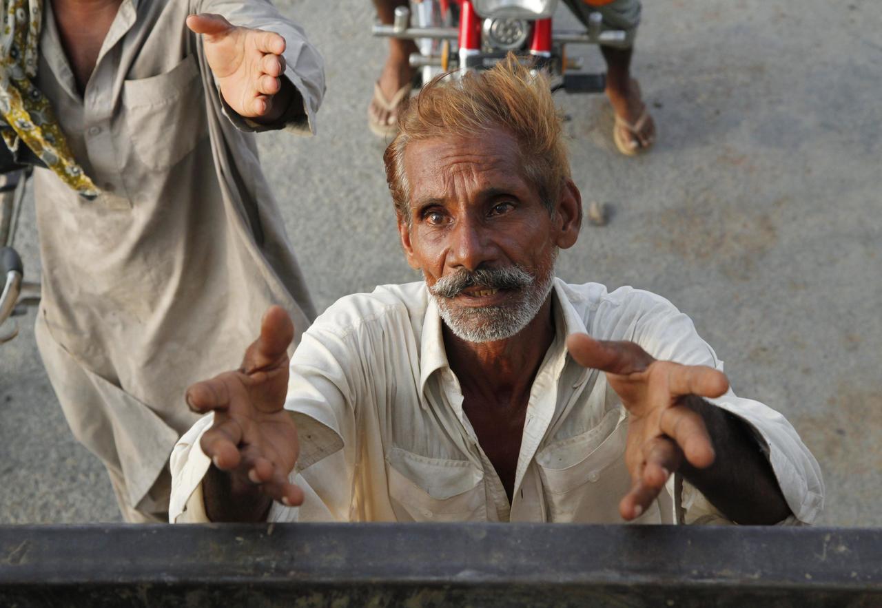 援,一切努力恐將付諸流水。圖為央求物資的巴基斯坦貧民。 圖/路透社