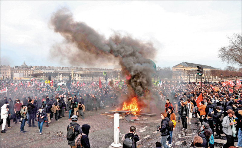 巴黎協和廣場聚集大批民眾激烈示威。(法新社)