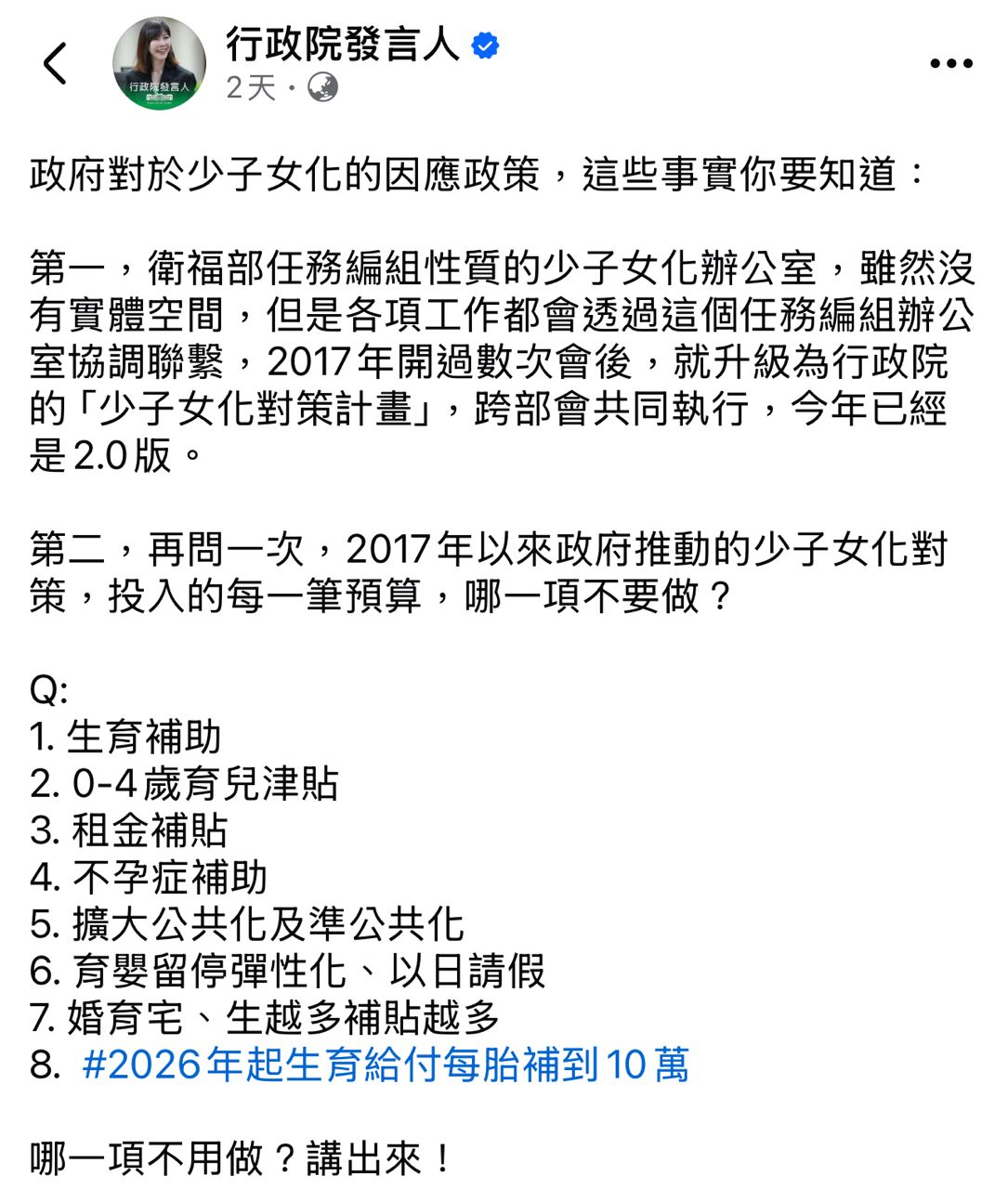 → misson: 黨內也沒人在串這種福利政策,蔣萬安、陳其邁開第一槍, 01/09 11:50