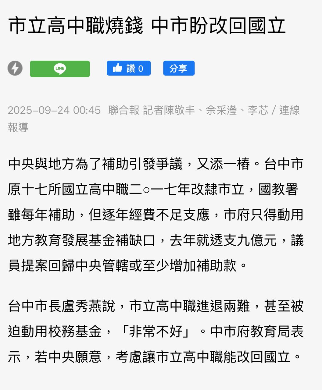 推 misson: 問題是台中過兩個月就宣布營養午餐免費,老實說就是各政 01/09 11:50