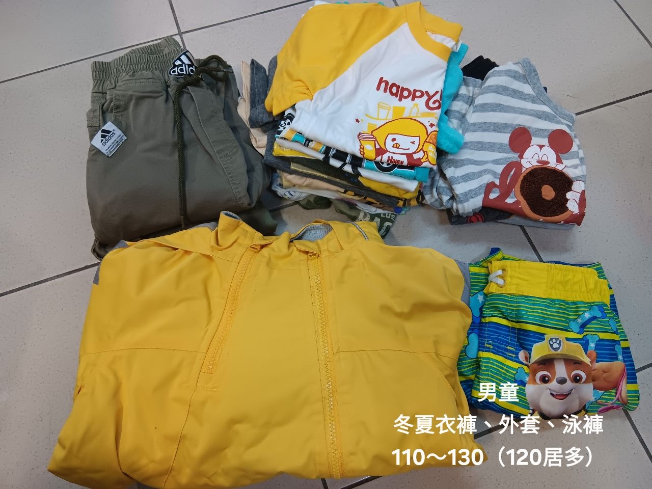 1.男童衣褲,冬夏皆有,110~130(120居多),還有一件褲,粗穿