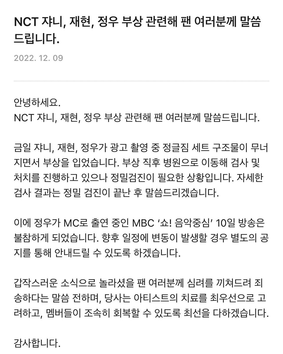 推 koreafish: 半夜新的聲明是挫傷,已治療完成返家 111.81.131.29 12/10 09:59