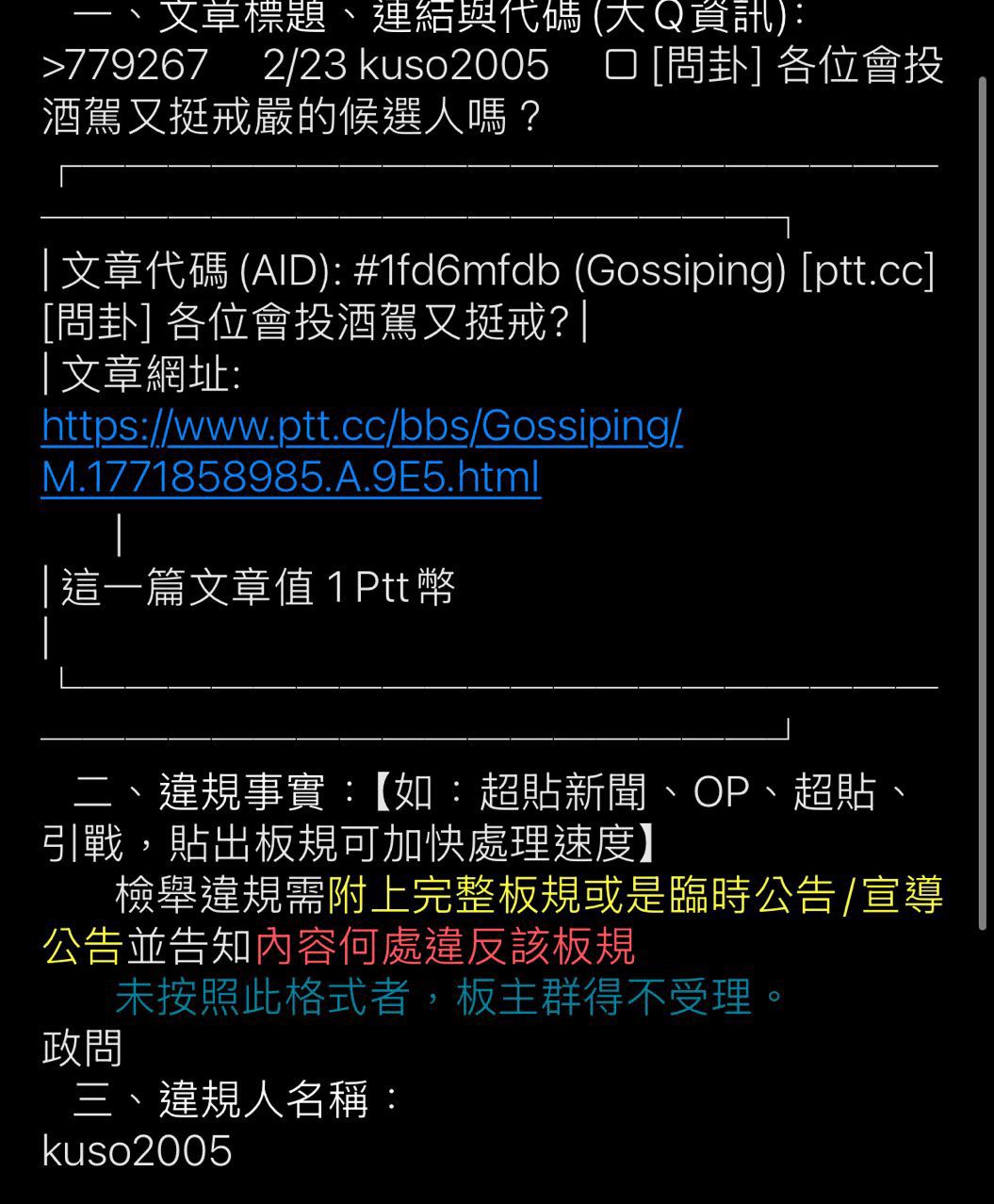 申訴內容:文章完全沒提到特定候選人人名卻被判政問,已寄信跟 tobetwob 溝通無果但