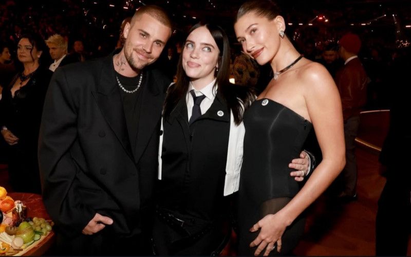 怪奇比莉(中)在典禮上開心與小賈斯汀(左)和他老婆海莉合照。(翻攝自IG)