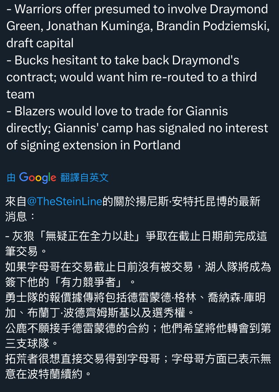 → Lekas: 字母過巔峰了 他也怕去勇士 結果沒鬥贏 這就是他的疑慮 02/04 13:31