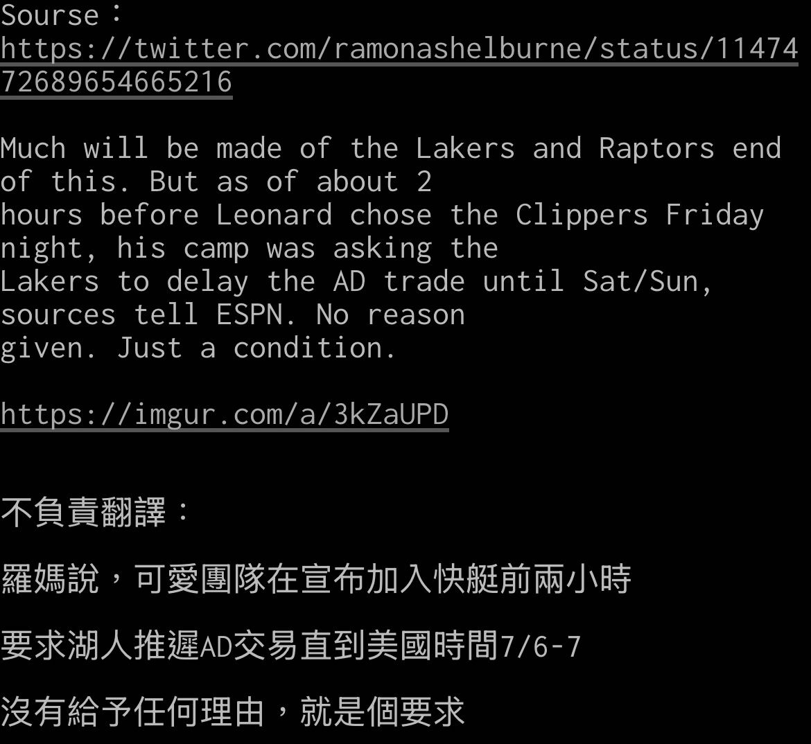 → Lekas: 字母來湖人的記者會 "我跟77都愛我們母隊 但我們都來這了" 02/07 18:23