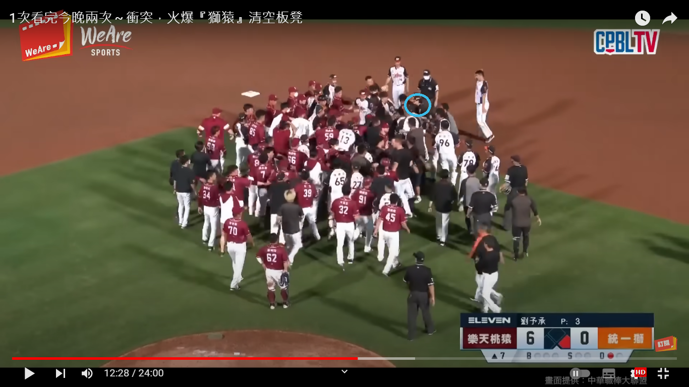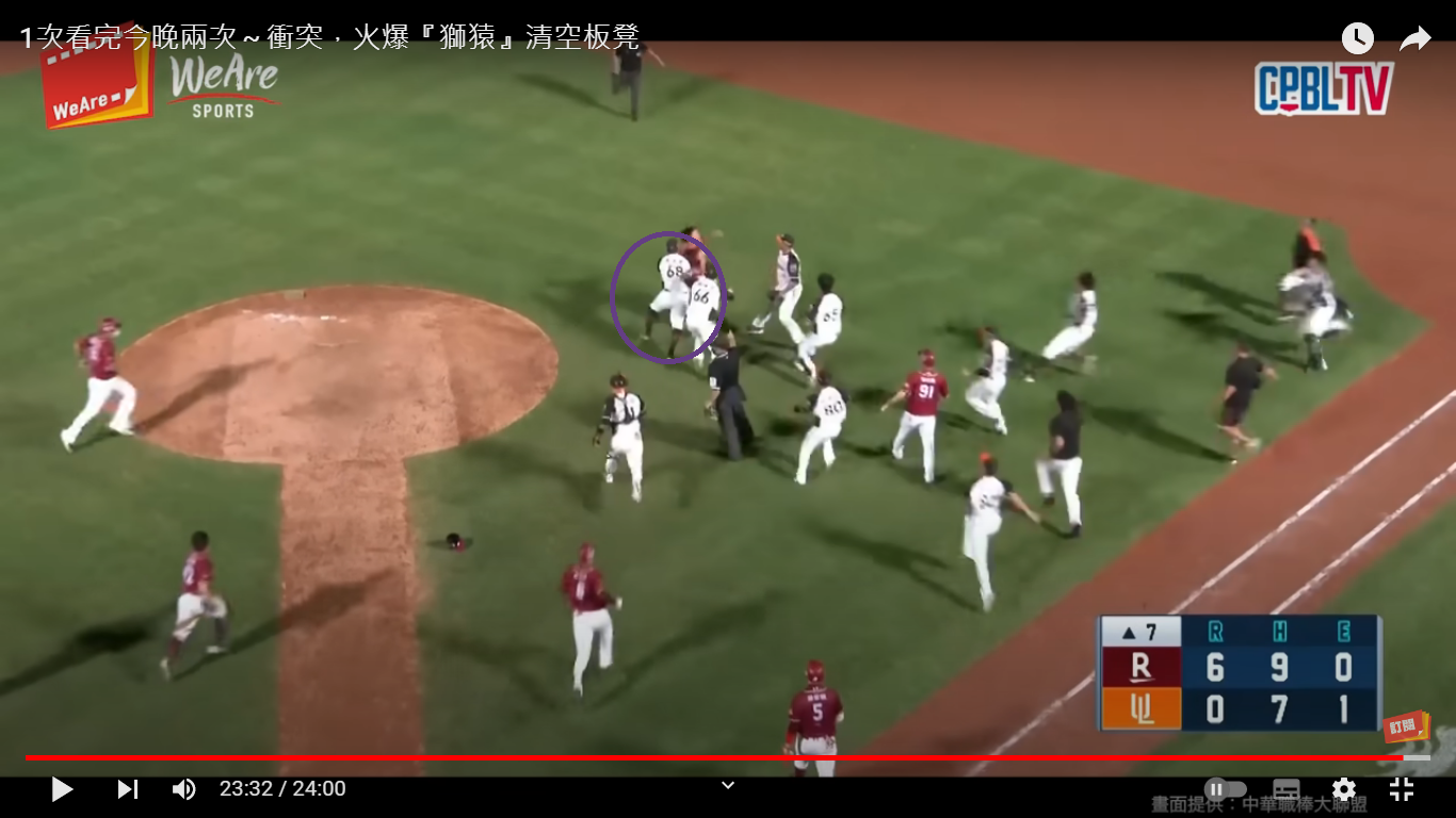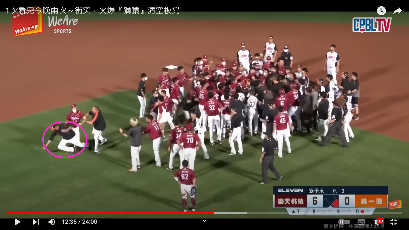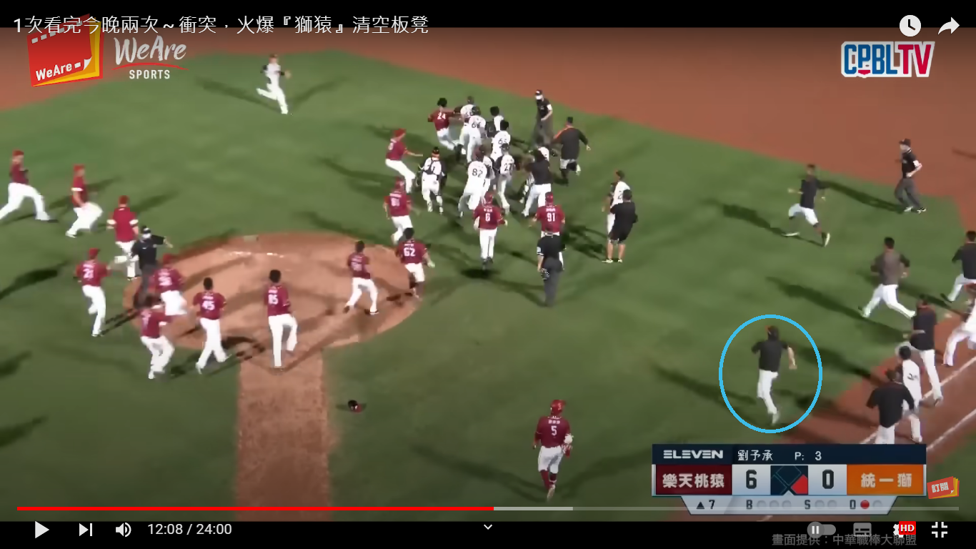 但第二次衝突 蔡鎮宇不在一軍名單內 還爆衝這麼快 直接撞翻投手