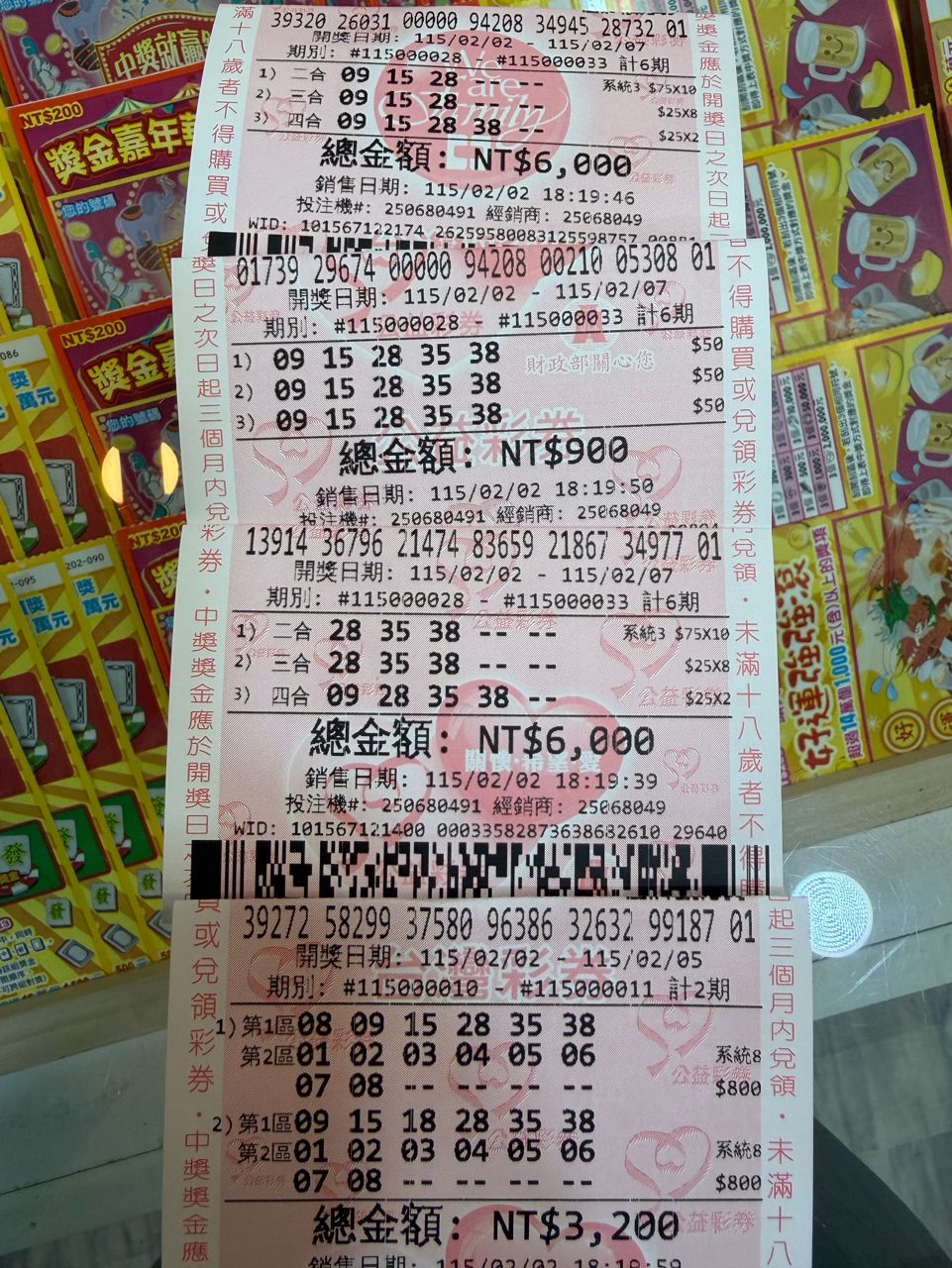 威力彩:9、15、28、35、38 補個8跟18