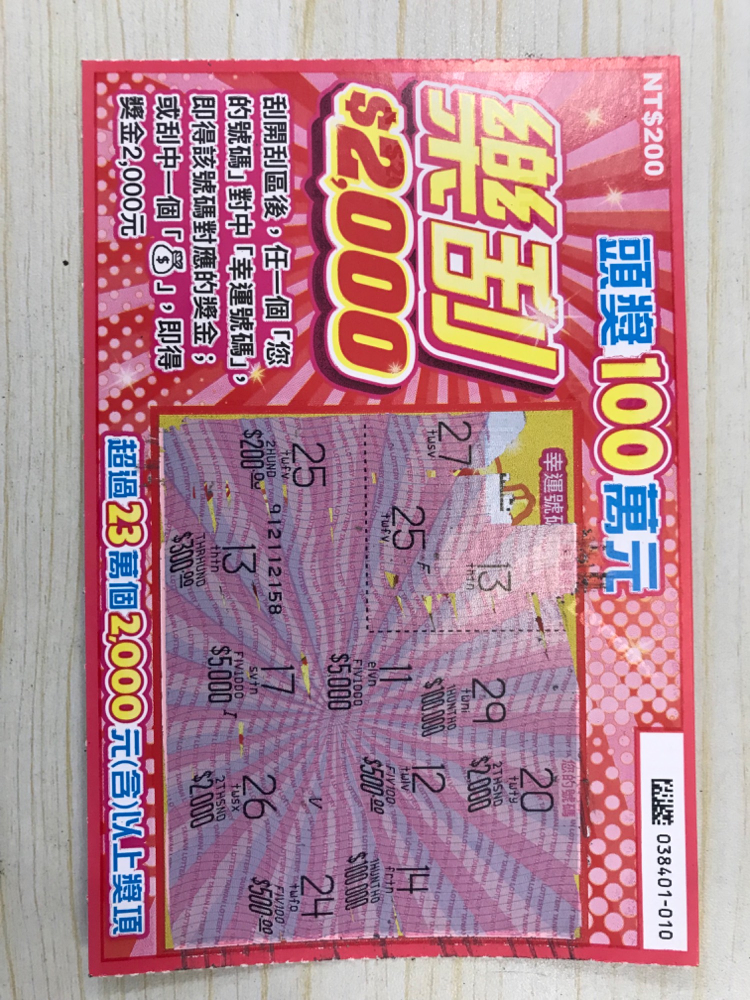 標題[真相] 樂刮$2,000 中 500