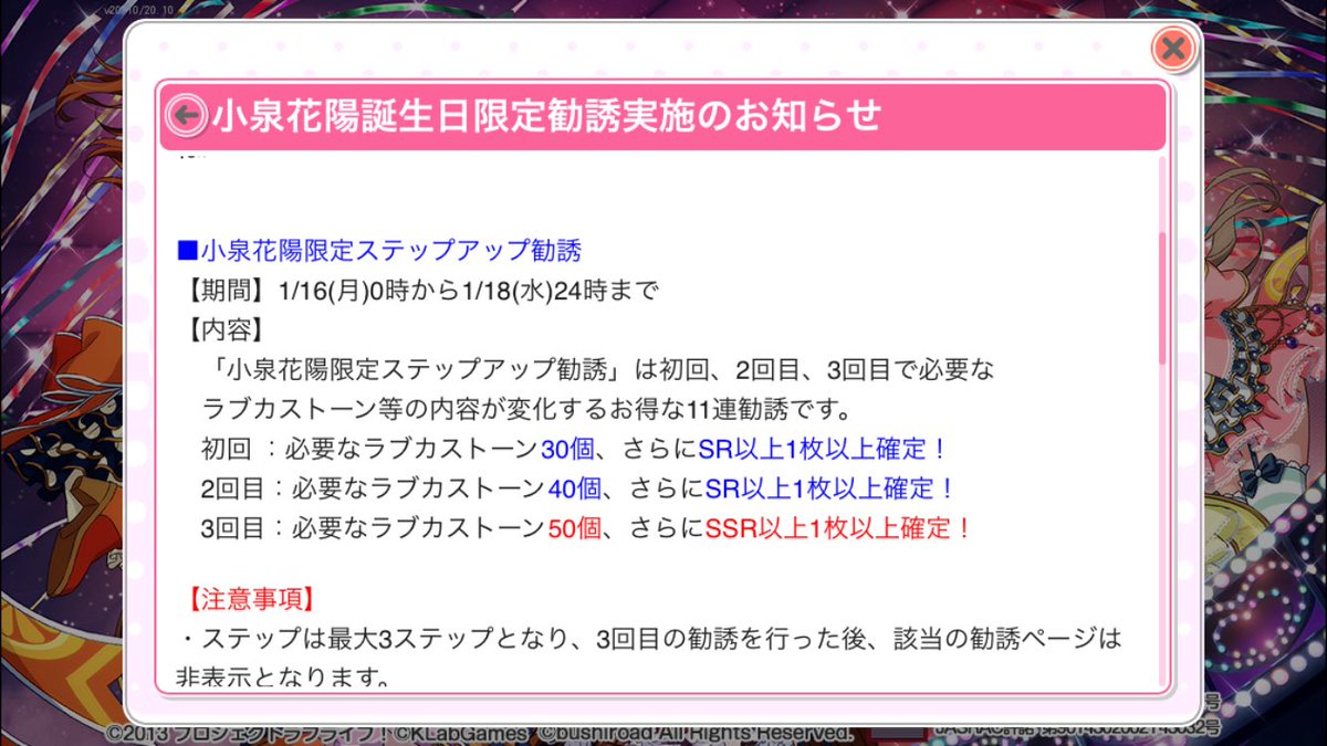 推 alone555: 本來要存心抽3月海未生日,可是如果30心就可以抽11連會 01/14 15:14