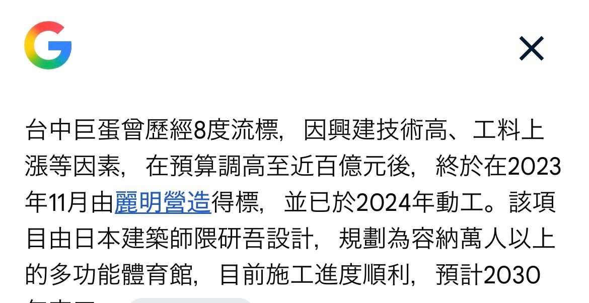 噓 a1412762347: 台中巨蛋8度流標,最後也只有一家廠商投標而已 03/16 21:13