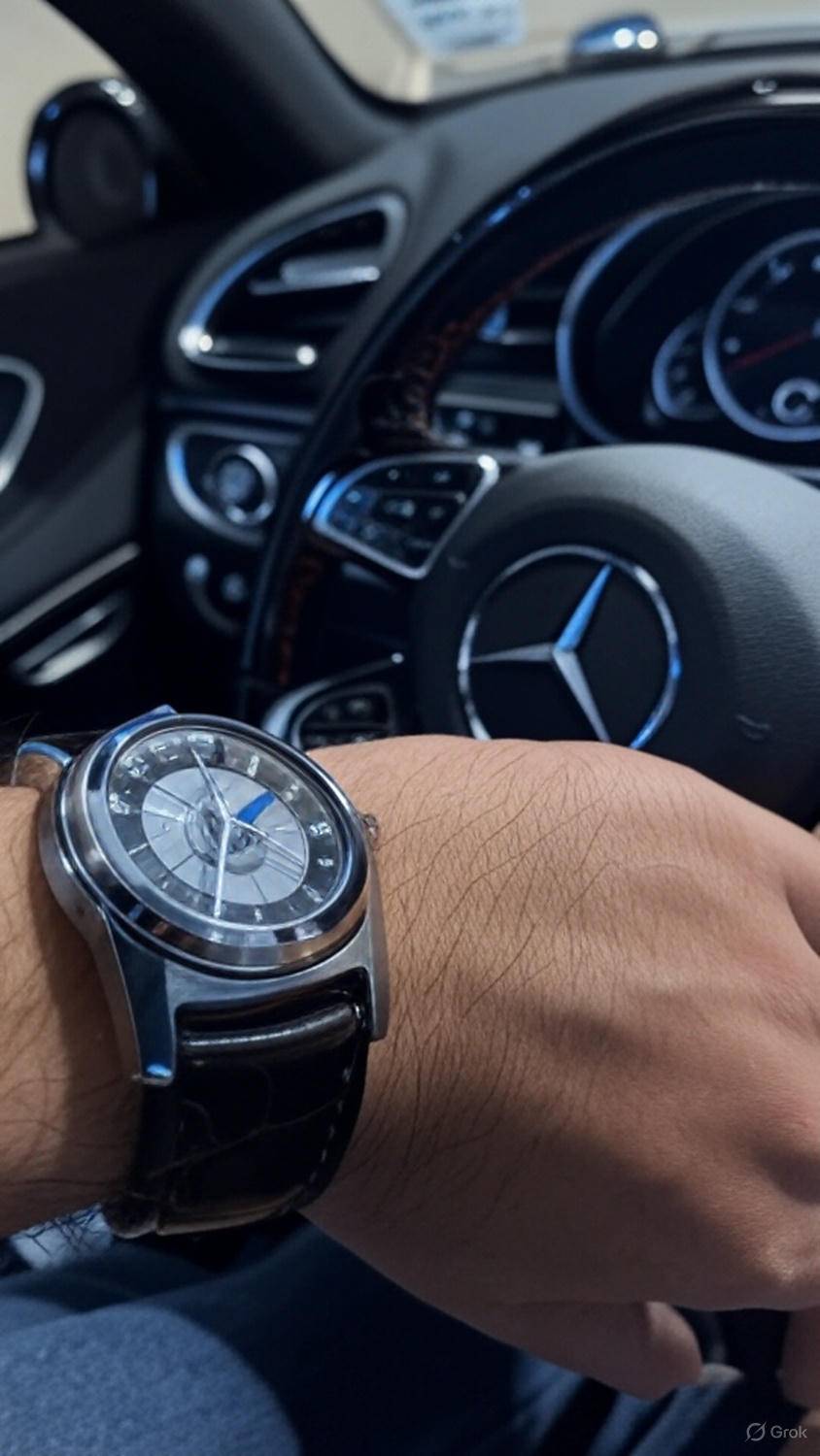 生成在賓士裡手握賓士方向盤