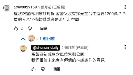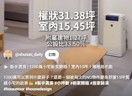 而且我查了一下這間屋齡2年 過五年就7年以上 小坪數還要賣1200萬以上