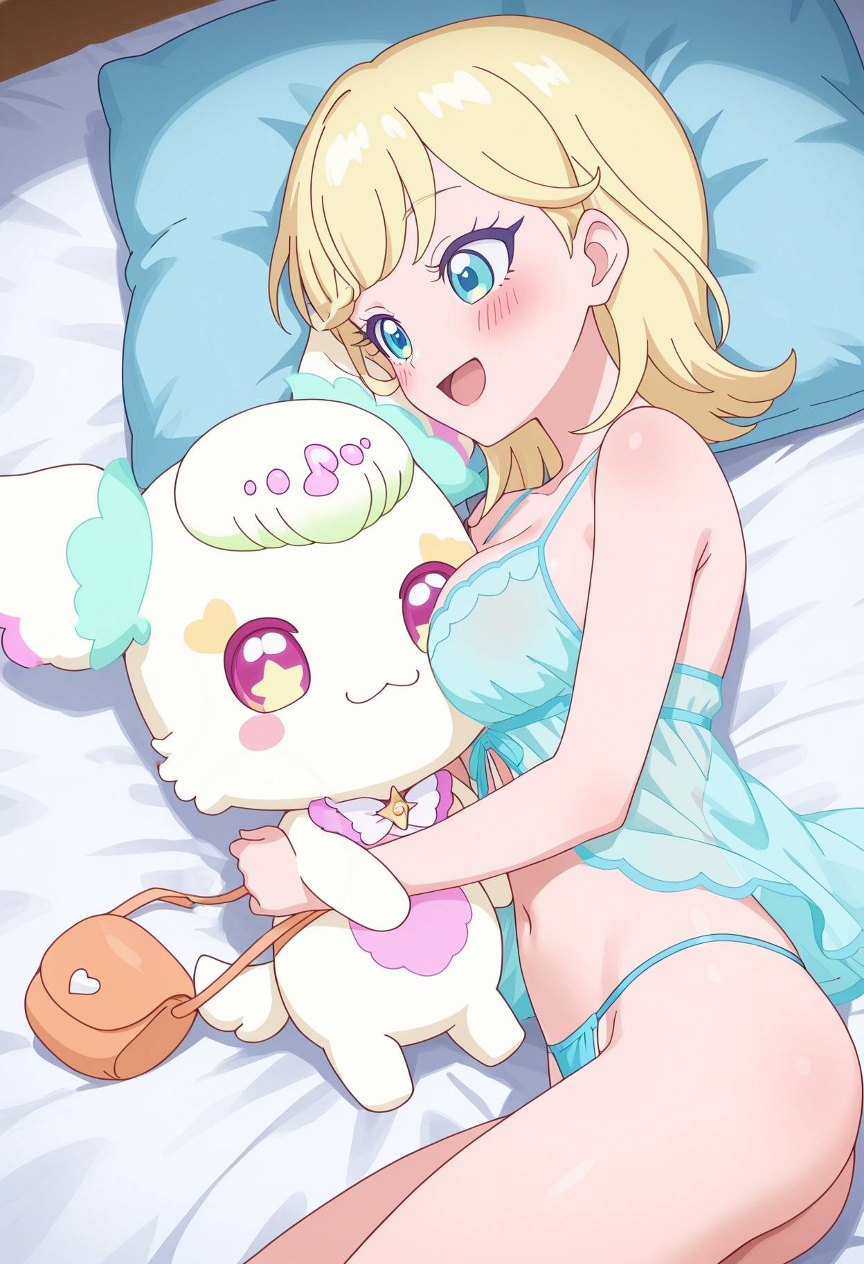標題CureSeal:星川美月跟プリルン一起抱著小香腸抱枕躺在床上