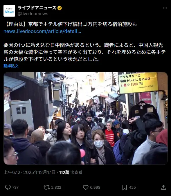 另外,京都車站周邊另一家飯店的相關人士也表示,隨著楓葉季結束,加上原本以中國團