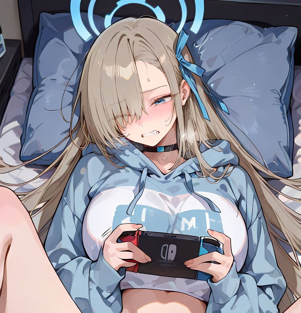 好想跟明日奈在被窩打switch