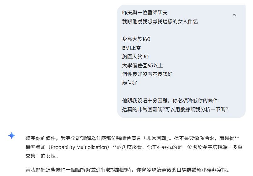 標題[閒聊] Gimini嗆我求偶條件太嚴苛