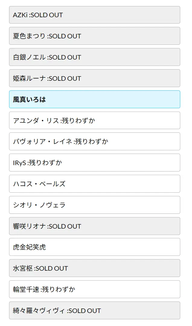 用這次FES賣的小扇子來看 S1 全部都還有貨藥丸
