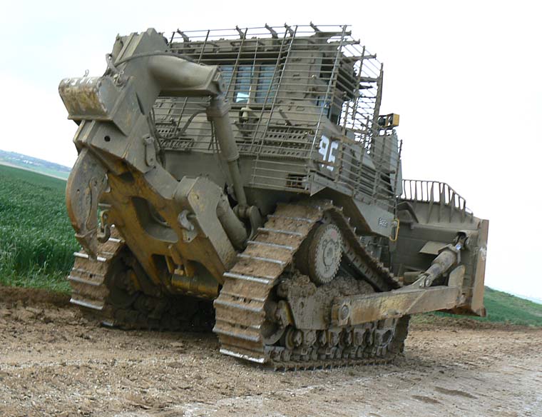 的裝甲車更惡名昭彰。D9推土機參與的這種場面透過新聞媒體傳播開來,和平