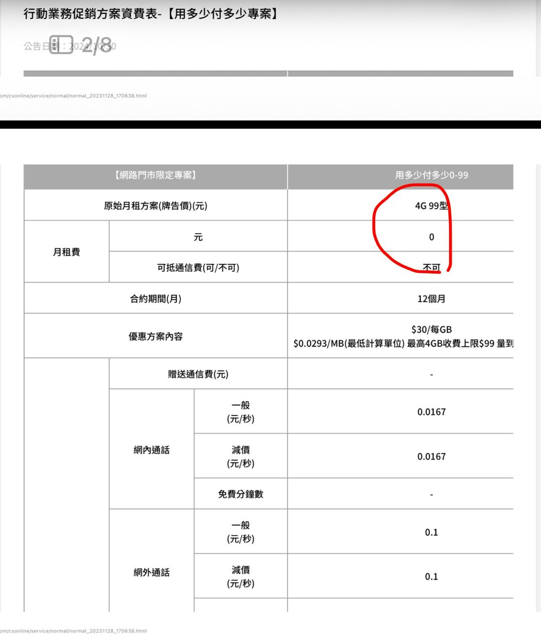 其實用這一項就能證明本方案是「0月租」,今天電話內容說「系統無法統計過去12個月